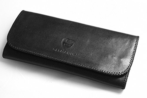 Completely Made From Heavy Natural Genuine Leather. Outside and Inside: Black smooth Leather. Fine selected leather quality. Rubber Lined Compartment inside