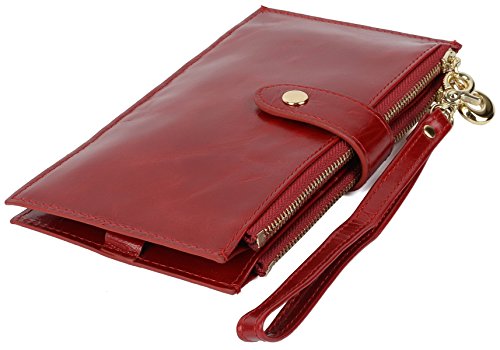 Best Seller! Yaluxe Women's Leather Multi Card Organizer Wallet with Double Zipper Pocket (Gift Box) Red Review